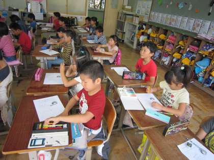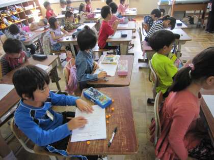 2年1組では,道徳で「たのしかったハイキング」という資料を使って,自然に親しもうとする心について話し合いました。