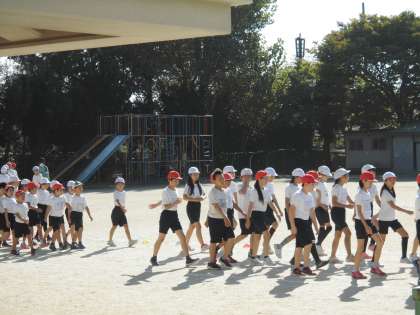 はじめに入場行進の練習をしました。
