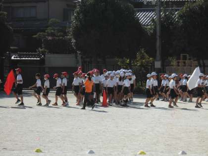 今日は,24日(土)の運動会に向けて全校練習を行いました。