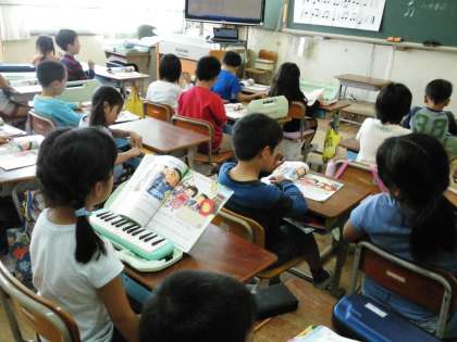 2年1組の教室から「村まつり」の元気な歌声が聞こえてきました。