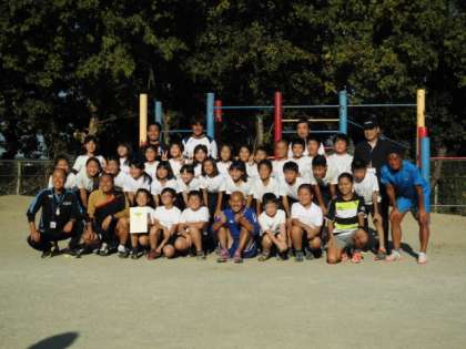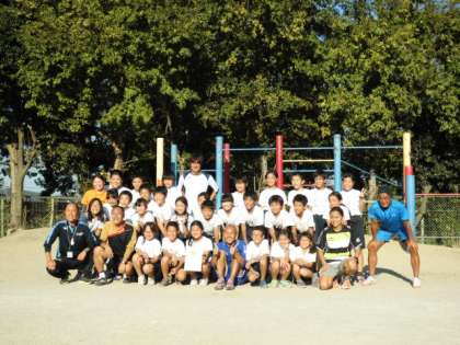 最後に指導してくださった方達と記念撮影を行いました。子ども達にとって本物のプレーを見る事ができたのは,本当にいい経験ができたと思います。ありがとうございました。