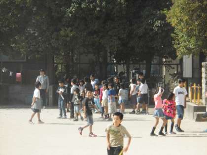運動場では,けいどろやボールを使ったゲームなどをしていました。