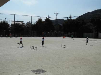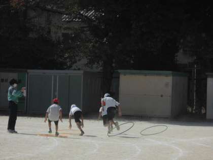 3年生は,運動場で個人走「ネバーギブアップ!進め,一歩前へ!!」の練習をしていました。