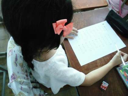2年1組では,4の段の練習プリントに取り組んでいました。