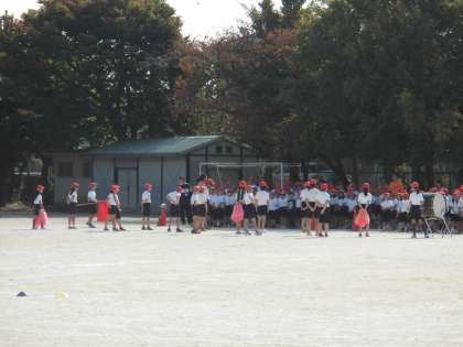 応援団の子ども達は,よく聞こえる声で応援をリードしていました。