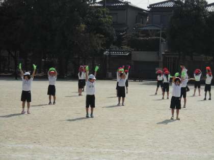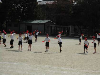 1年生は,団体競技「玉入れ シューティングスター☆」の練習をしていました。