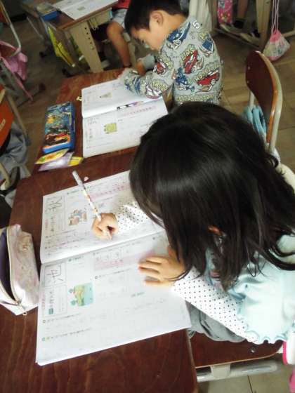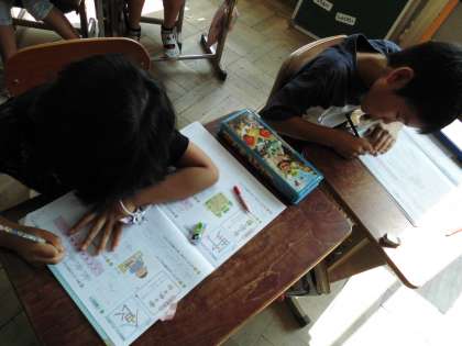 2年2組では,「池」と「食」という新しい漢字の練習をしていました。