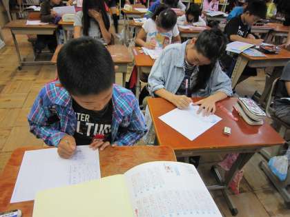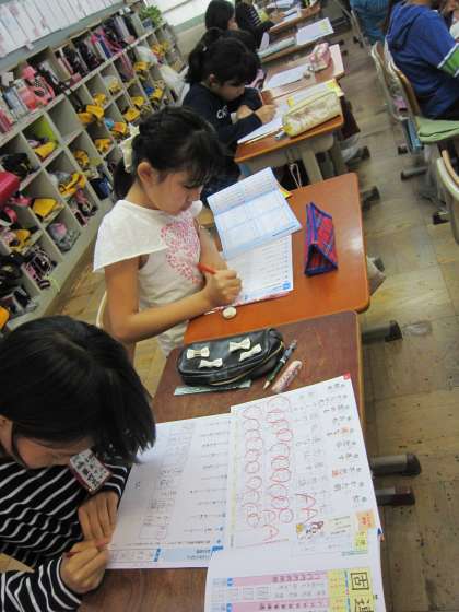 4年2組では,漢字のドリルを使って,漢字の練習をしていました。