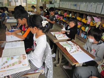 3年1組では,理科で太陽について学習しようと計画していたのですが,あいにくの曇り空でできません。そこで,これまでの学習の復習をしていました。