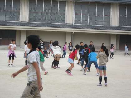 昼休みたくさんの子ども達が運動場に出てきました。