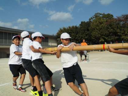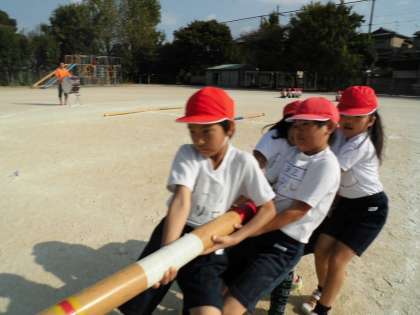 3年生は,棒引きをしました。団体戦は4〜5人で引き合います。