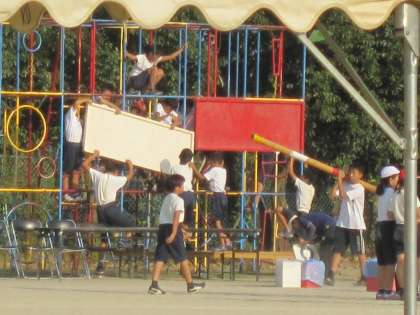 明日は運動会,朝から最後の練習に励んでいました。