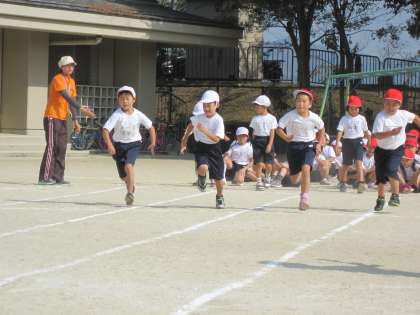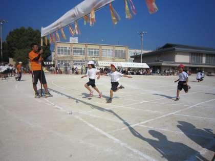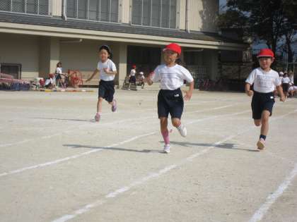 1年生にとって,まっすぐに走ることは難しいことです。