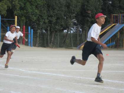 リレーに出る子ども達は,中間休みや昼休みを利用してバトンパスの練習をしていました。今日は,その成果を見せてくれました。