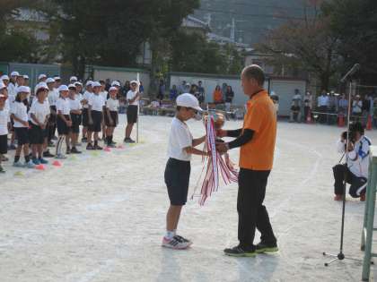 学校長より,優勝杯が白組応援団長に手渡されました。