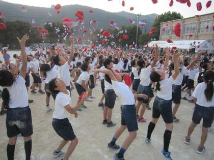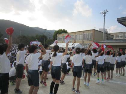 閉会式の最後には,両応援団長と学校長により,「わっしょいコール」が行われ,今日一日の頑張りをたたえ合いました。