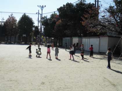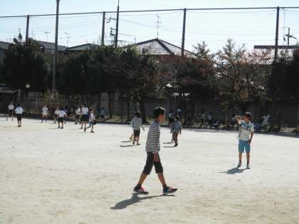 たくさんの子ども達が運動場に出ていました。