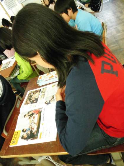 6年2組では,家庭科で今日から「まかせてね 今日の食事」の学習を始めます。