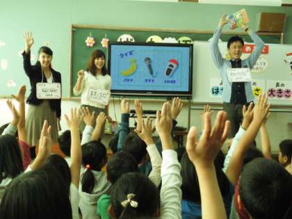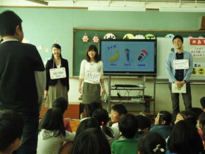 今日の授業のめあては「ことばで伝える楽しさをあじわおう」で,ポイントは「読むはやさ」「声の高さ」「声の大きさ」です。さすがはプロのアナウンサー。子ども達はその読み方にどんどん惹きこまれていきます。
