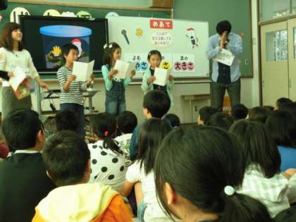 最後は子ども達が,ナレーターと登場人物になりきって場面読みに挑戦しました。学芸会のセリフを言う時に,今日の授業で学んだことを活かせるようにしていきたいと思います。アナウンサーとスタッフのみなさん,言葉の力を感じさせるすてきな読み聞かせありがとうございました。
