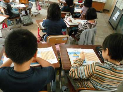 2年2組では,算数で「九九」の表を使って学習していました。