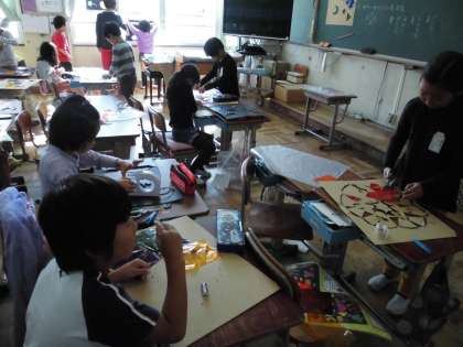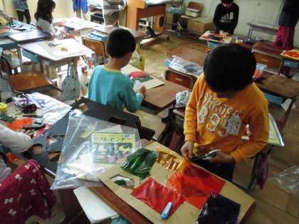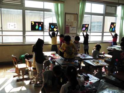 早くできた子から,出来上がった自分の作品を光にかざして見ていました。