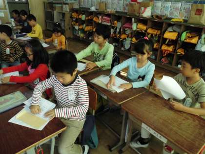 もらった子ども達は,ていねいに二つ折りにして机の中にしまっていました。