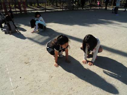 3年生の理科は,日向と日陰の違いを地面で確かめています。