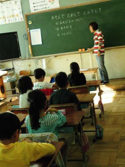 今日の1組では,あそぶものやあそびかた・かんばんなどについて考えていました。