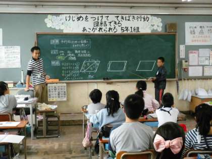 5年1組では,算数で「平行四辺形の面積の求め方」について考えていました。