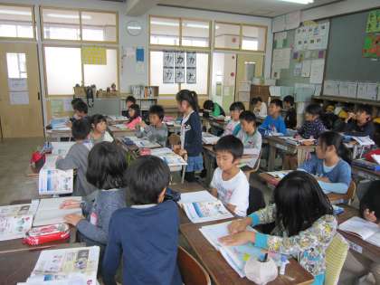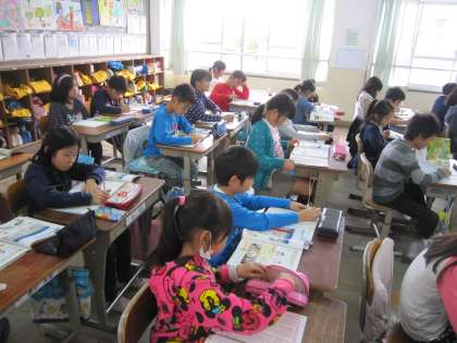 先日は,日なたと日かげの地面の様子を観察し,今日は観察したことのまとめをしていました。