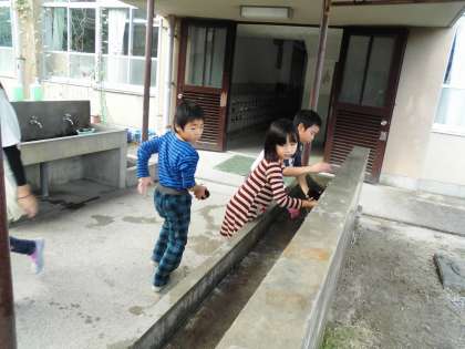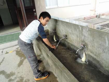 手洗いの掃除をしました。たわしでこすると気持ちがいいです。