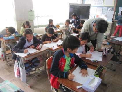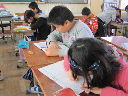 今日は,プリント使って三角形の面積を求める練習をしていました。