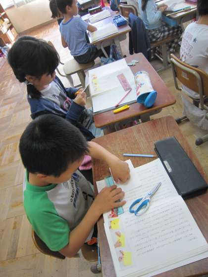 子ども達は,書かれている通りに,「しかけカード」をつくろうと教科書の文を丁寧に読んでいました。