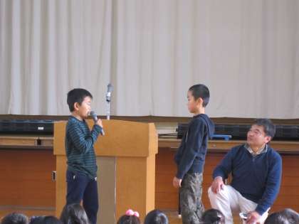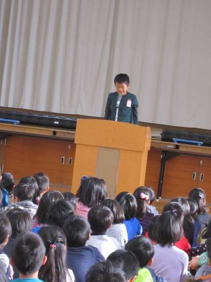 今日は,3年生が「○○に感謝する日」というテーマで考え,発表しました。