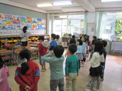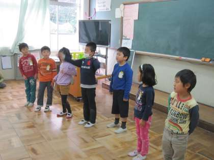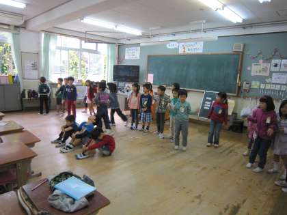 1年生は,学芸会に向けて今日は教室でセリフや動作の練習をしていました。