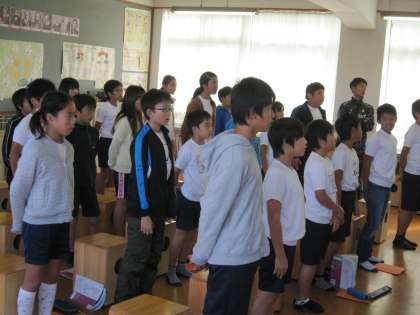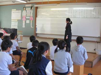 6年1組では,音楽の時間に「ふるさと」を歌っていました。