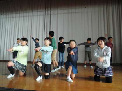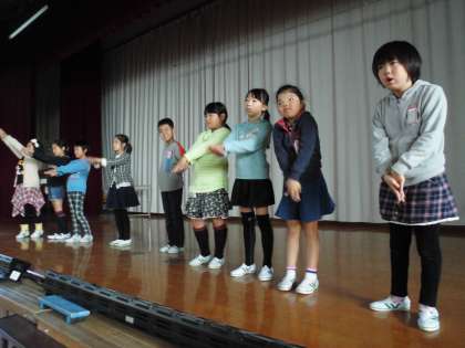 3年生の学芸会「ピノキオ」の練習です。すべての子の動きの練習が出来たので,体育館で通し練習をしました。