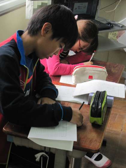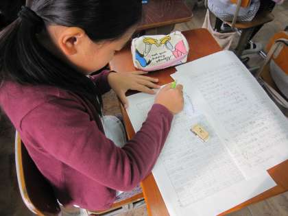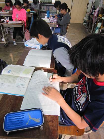 5年2組では,国語で学習中の「グラフや表を用いて書こう」で,作文を書いていました。