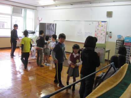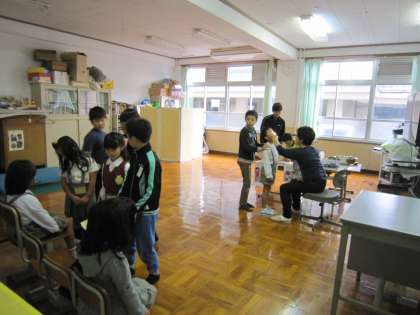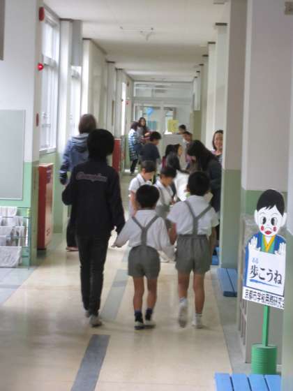 受付の後,5年生が順番に健診場所の教室を案内していきます。