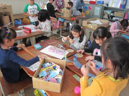 子ども達は,グループの子たちと話し合いながらお店づくりを進めていました。