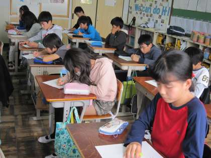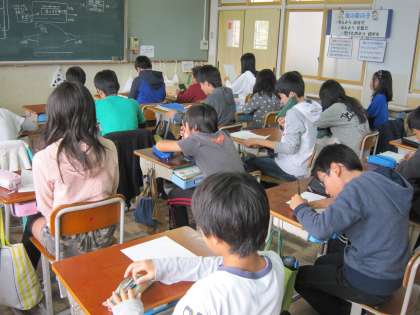 6年2組では,自分たちの行う「劇」のラストコールの役割を決めていました。