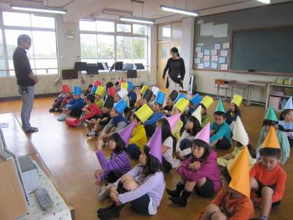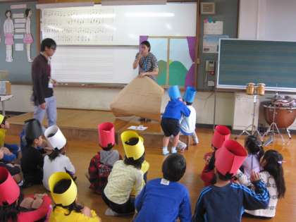 1年生は,音楽室で劇の練習をしていました。
