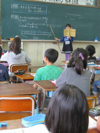 自分の考えをまとめられた子は,前に出て自分が考えたことをみんなに伝えていました。
