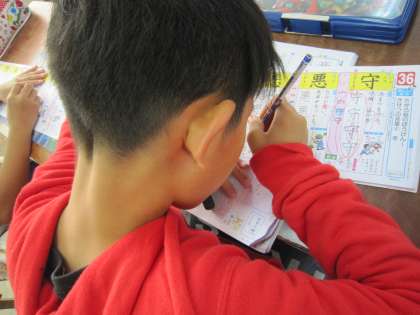 3年1組では,「悲」「悪」という二文字の新しい漢字を練習していました。