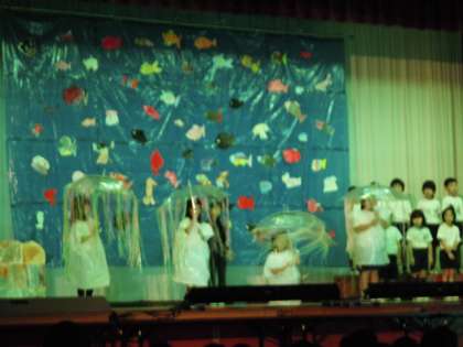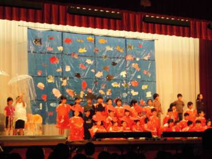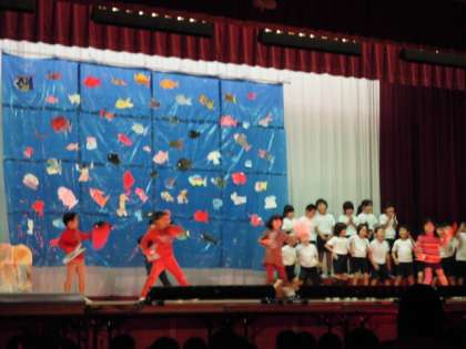 2年生の音楽劇「スイミー」 レオ・レオニの名作「スイミー」を劇化して,すばらしい海の世界を表現していました。