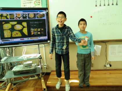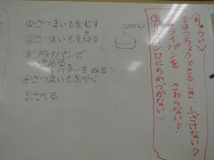 先日,収穫したサツマイモを使ってフライパンで焼き芋をしました。司会をしてくれる子がいました。