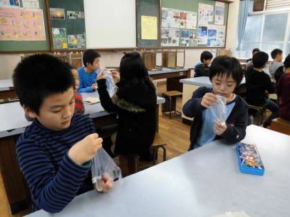 後期のクラブが始まりました。自己紹介をした後,「もこもこ手袋」を作りました。
