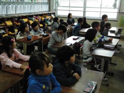 照れながら見ている子や笑顔で見ている子と,表情豊かに見ていました。