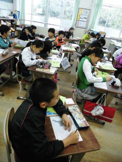 4年1組では,「都道府県」名を覚えようと,その特徴をクイズのようにしています。